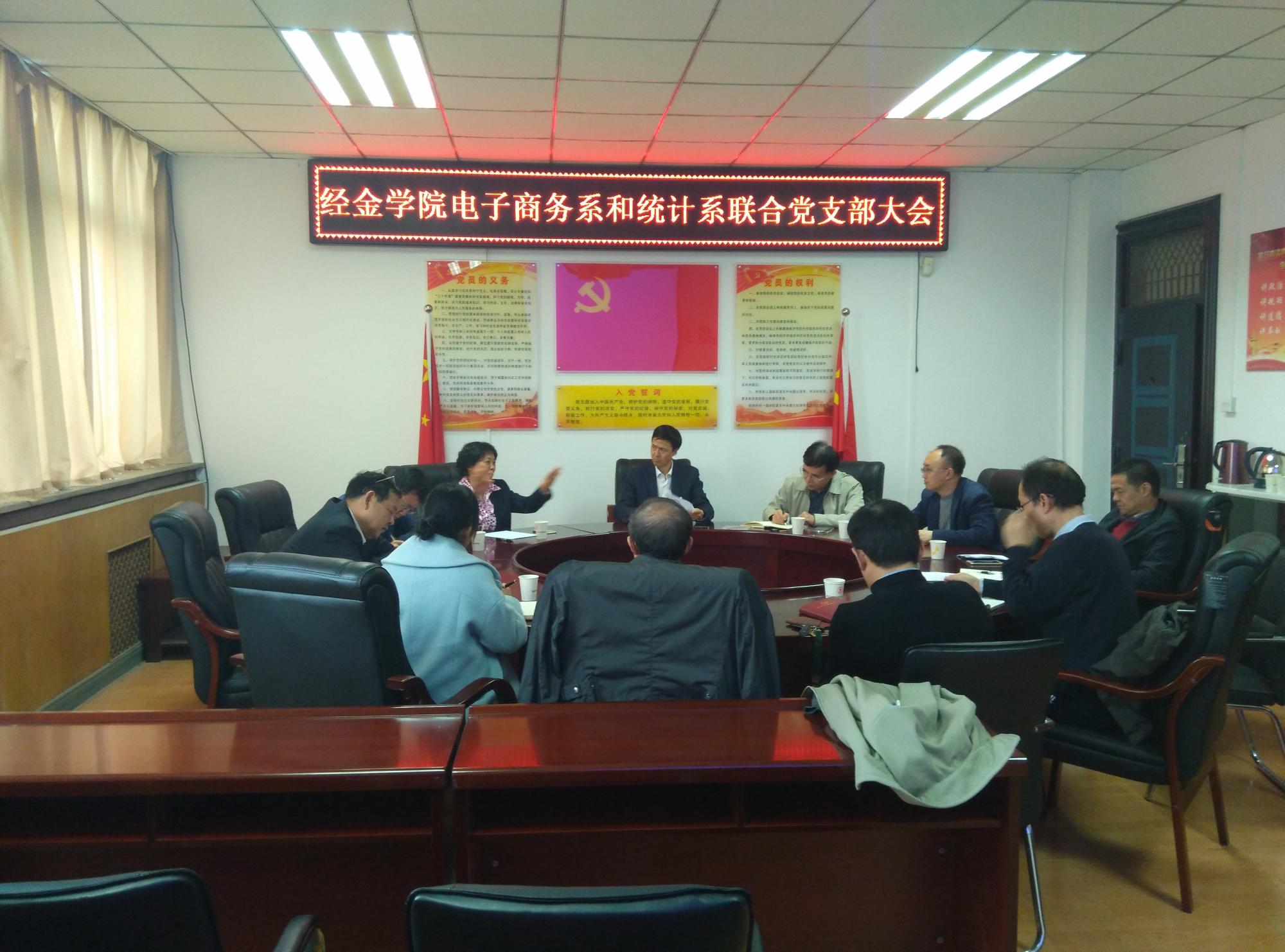 10月23日下午,经金学院电子商务系和统计系支部联合举办支部会议学习十九大报告,赵军武常委应邀参加了支部生活会。经金学院党委周建伦副书记、组织部刘越老师列席会议。