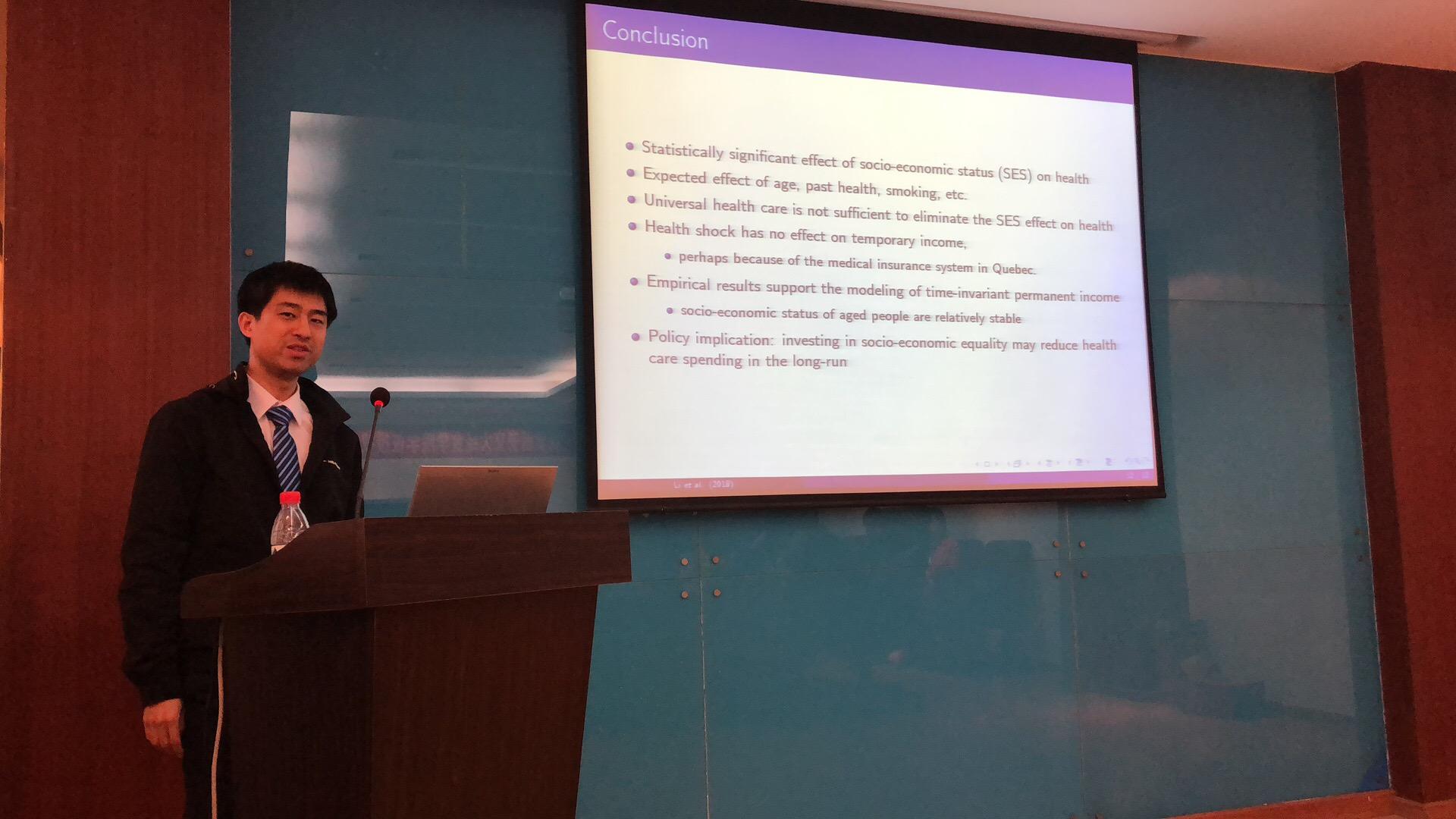 下午的论坛活动以学术报告与研讨为主。先后由来自加拿大舍布鲁克大学的李清博士、英国杜伦大学的颜诚博士、加拿大阿尔伯塔大学的刘润娟博士、英国曼彻斯特大学的徐怡爽博士以及巴基斯坦拉合尔大学的Muhammad Ishfaq Ahmad博士分别以“Effect of Permanent Income on Health for Aged People”、“Time-varying Skills (versus luck) in U.S. Active Mutual Funds and Hedge Funds”、“Trade Exposure, Labor Market Outcomes, and Stated Preferences for Import Protection”、“The Effects of Rental Growth Expectation on Real Estate Return-- A Term Structure Model and an Empirical Test in Hong Kong”以及“TIME Moving Average Strategy over UK Individual Stocks versus Portfolio” 为题,为经金学院的师生们做了精彩纷呈的学术报告,并与师生们进行了热烈的互动交流。
