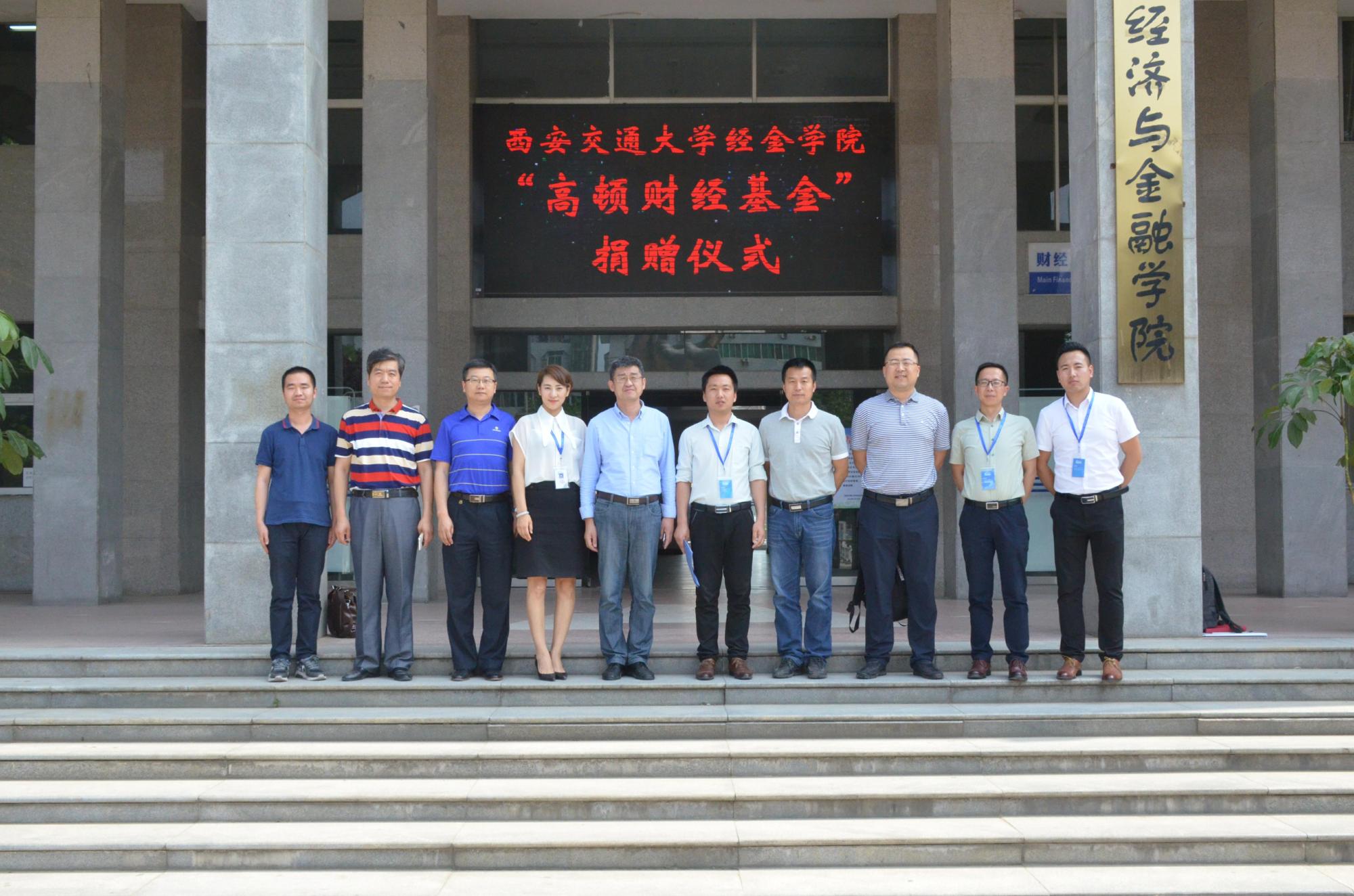 5月18日下午,西安交通大学高顿财经基金(奖学金)捐赠仪式在经济与金融学院举行。高顿财经领导、校基金会秘书长赵卫滨、经金学院院长孙早、启德书院院务主任郭虎、宗濂书院院务副主任陈勇和经金学院研究生和本科生代表参加。捐赠仪式由经金学院周建伦副书记主持。