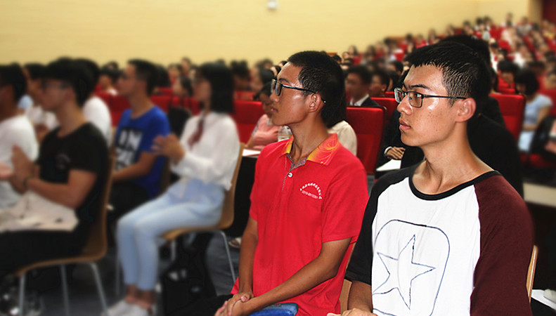 2018级新生开学典礼在庄严肃穆的国歌声中拉开序幕。刚刚从新加坡国立大学访问归来的学院青年教师杨万平老师作为教师代表首先发言。杨万平老师与同学们分享了四个字:第一个字是敬重、敬畏的“敬”、第二个字是静心、静观的“静”、第三个字是洁净、净化的“净”、第四个字是竞争的“竞”。杨老师寄语同学们:“白发方知勤学晚,愿同学们珍惜学习时光,潜心学习和研究。当两年、三年或四年之后,你回首往事的时候,不会因为虚度年华而悔恨”。