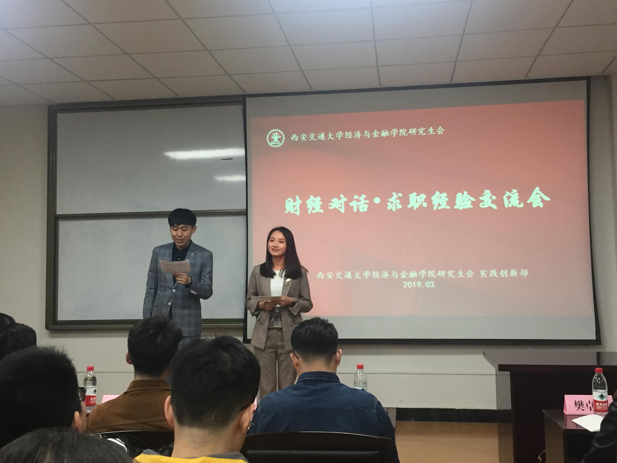 为帮助学生提高就业求职能力,3月7日晚,在财经主楼8楼报告厅,经金学院研究生会成功举办了求职经验交流分享会。本次交流会邀请了汪伦(2017级产业经济学)、吴博(2017级 金融专硕)、景高琦(2016级金融学硕)、樊卓群(2016级 金融学学硕)及雷蕾(2016级电子商务)等5位我院优秀学生,分享了他们在实习、求职、offer选择等方面的经历经验,并就同学们提出的问题进行了交流。