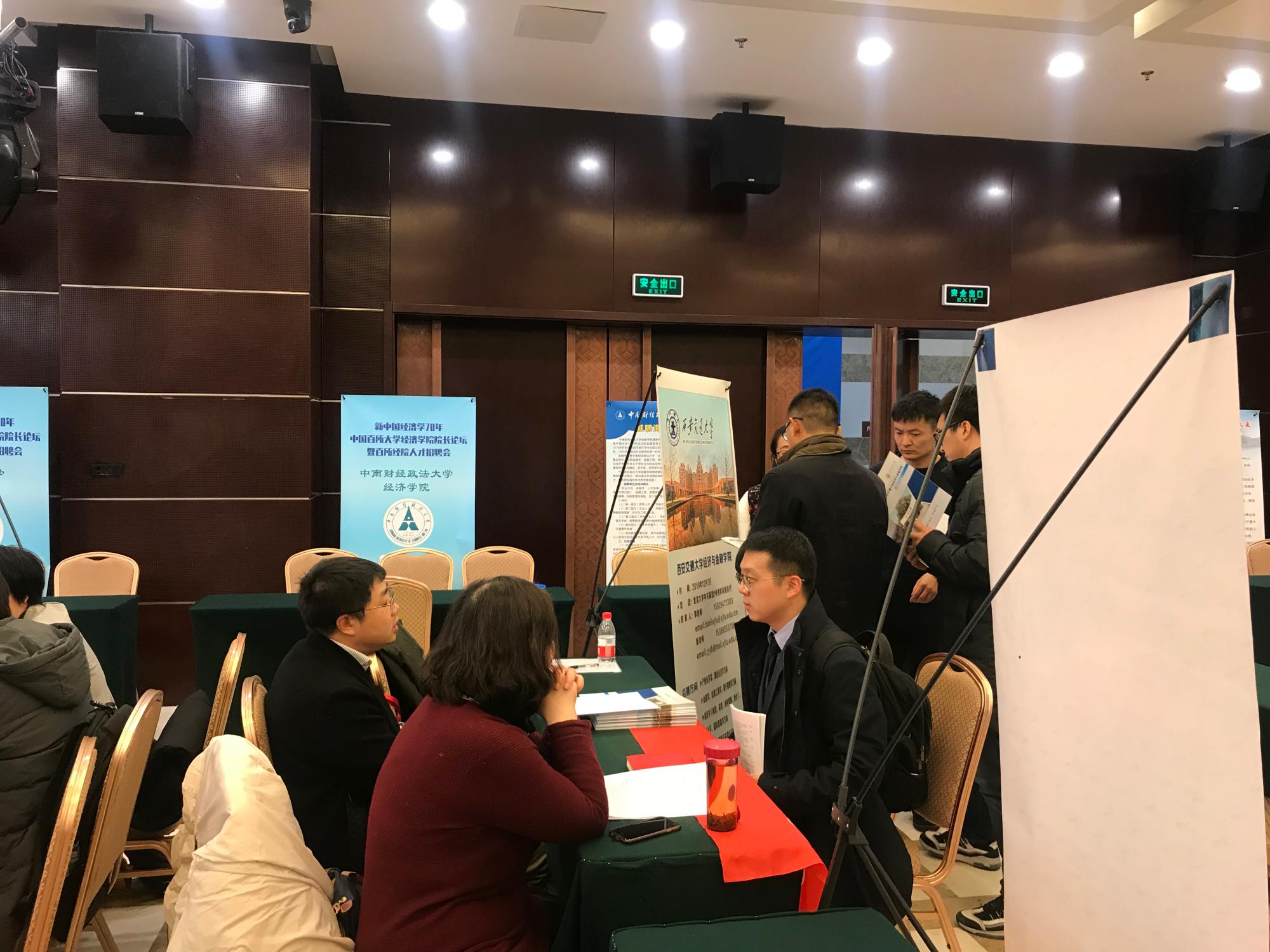在招聘会现场,来自北京大学、清华大学、中国人民大学、南开大学、新加坡国立大学等国内外一流大学的20余名博士与学院老师进行了面对面交流座谈。学院老师一行向他们详细介绍了经金学院的发展现状、学科建设规划和人才政策优势,耐心解答了青年学子关于个人待遇、考核机制、子女入学等关心的问题。