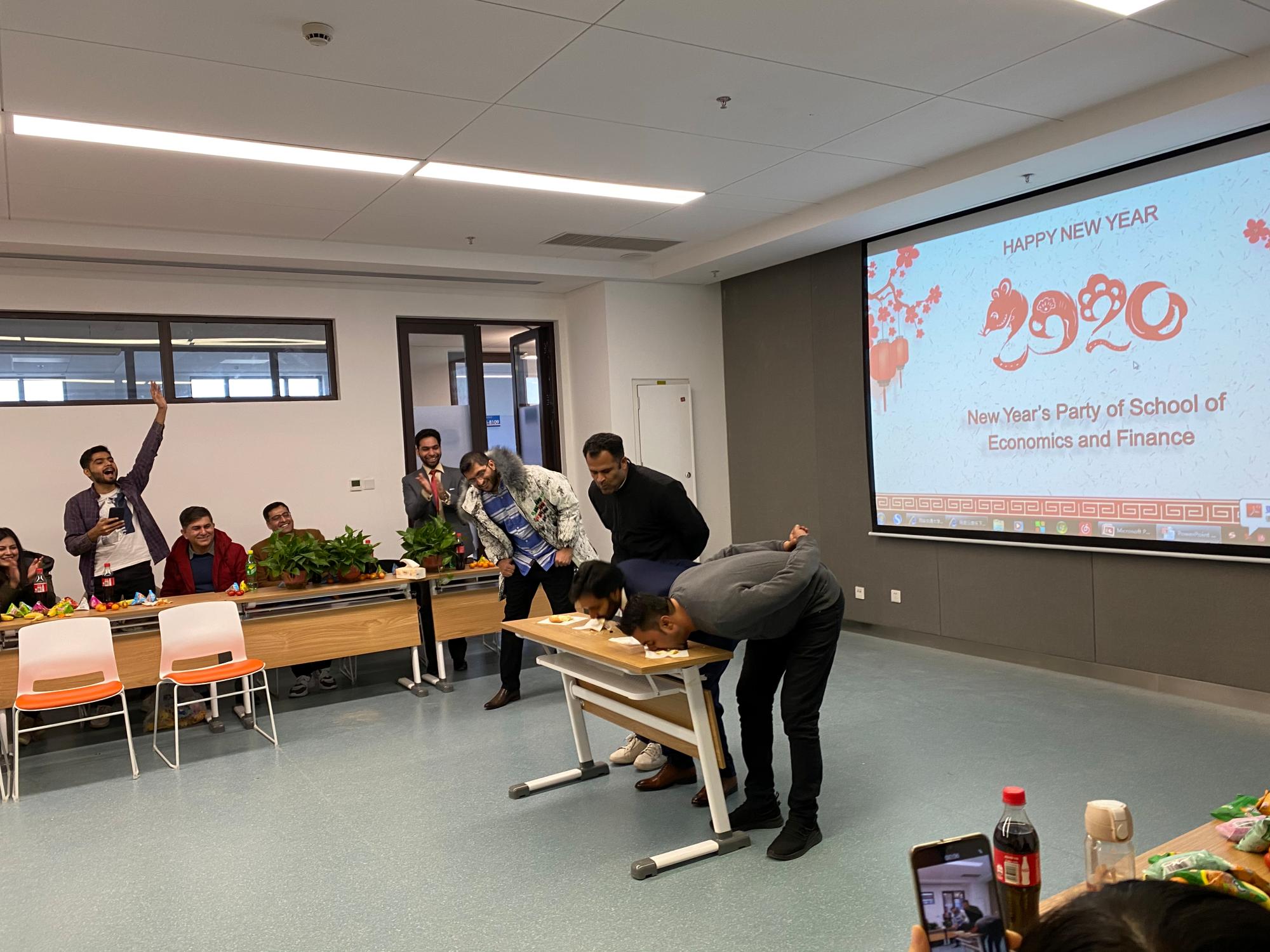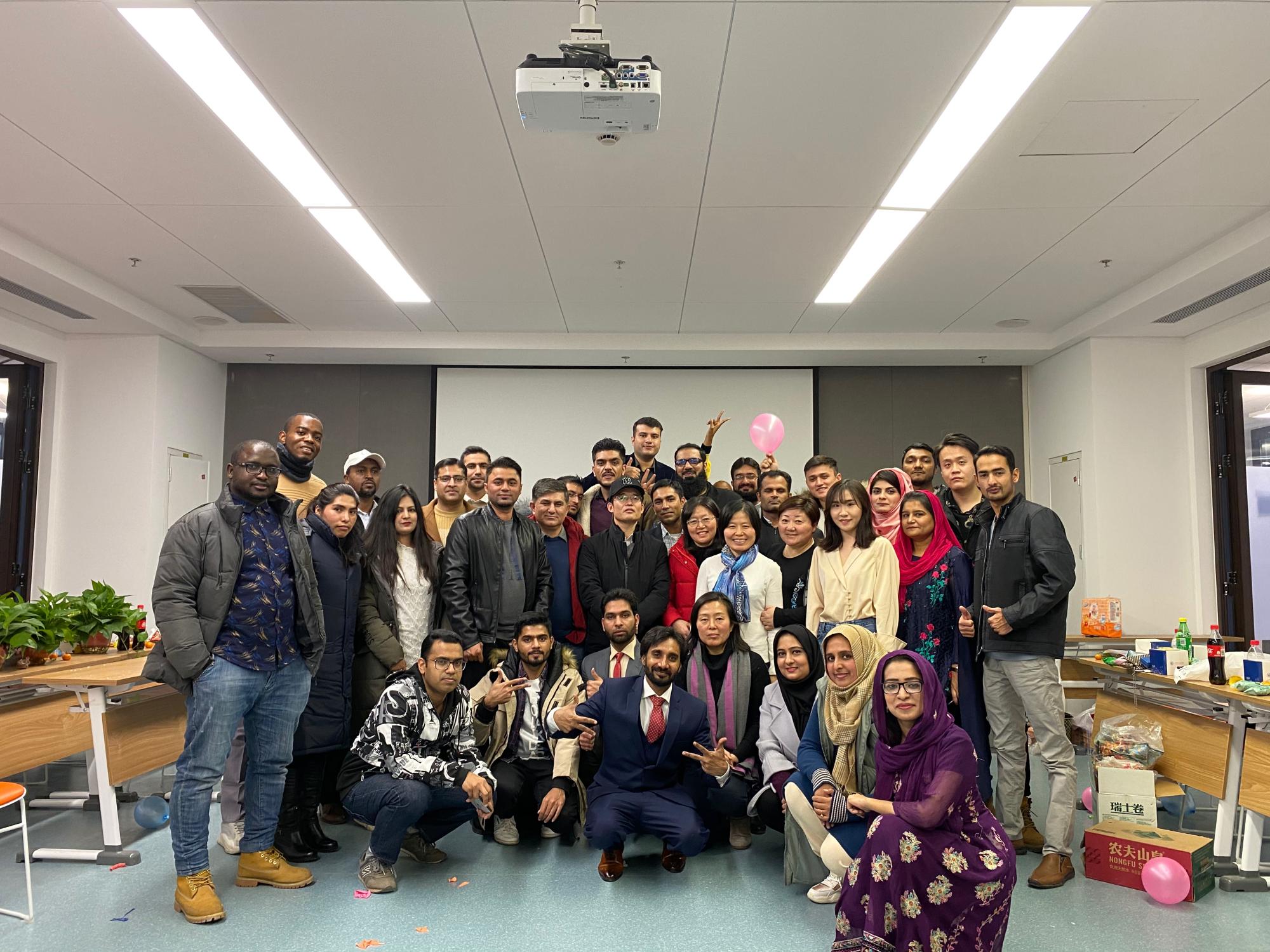 2019年12月31日,经金学院在创新港涵英楼8088会议室举办了留学生新年联欢会。国际教育学院纪婷副院长、经金学院温军副院长、杨少华老师、冯亚萍老师、刘华老师以及来自哈萨克斯坦、吉尔吉斯斯坦、巴基斯坦、埃塞俄比亚等国家的2018级、2019级留学生约60余人参加了新年联欢会。各国留学生与老师们欢聚一堂,共迎新年。