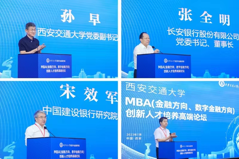 为深入贯彻党的二十大精神,加快实施人才强国和创新驱动发展战略,积极探索新时代工商管理硕士(MBA)教育规律,进一步提升创新人才培养质量,7月15日上午,西安交通大学经济与金融学院于兴庆校区逸夫科学馆国际会议中心举办首届西安交通大学MBA(金融方向、数字金融方向)创新人才培养高端论坛。