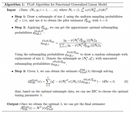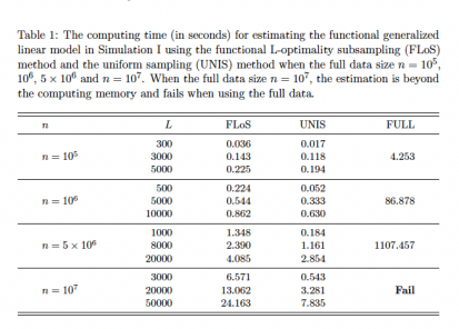 近日,针对上述问题,西安交通大学经济与金融学院青年教师刘华博士、上海财经大学统计与管理学院教授尤进红博士和加拿大西蒙弗雷泽大学(Simon Fraser University)教授Jiguo Cao博士进行了深入的研究。他们首次把子抽样思想应用到函数型数据分析,开发出适应于函数型广义回归模型的最优抽样方法Functional L-Optimality Subsampling(FLoS),以此来实现减少计算时间、克服内存不足等问题的目标。除此之外,作者还通过理论和一系列的数值模拟来说明了该抽样方法的准确性和有效性。
