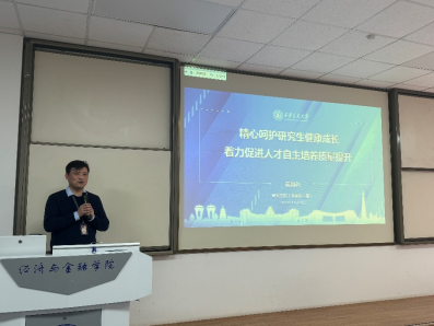 为了全面落实研究生导师立德树人根本任务,强化研究生导师思政工作能力,践行组织育人要求、汇聚育人合力,经金学院于11月29日下午召开研究生导师工作会。校党委研工部部长、研究生院副院长薛周利,学生心理发展指导中心、咨询中心主任姚斌,学院党委书记周建伦,学院研究生导师以及辅导员参加会议。会议由温军副院长主持。