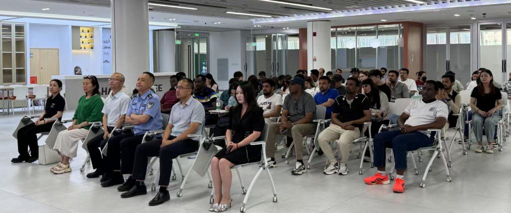 实践交流环节中,西咸新区移民事务服务中心警官讲解介绍了自贸区出入境便利政策;国际人才代表分享了自己就业创业的经验,鼓励学生把握机遇,融入国际化发展浪潮。管理咨询有限公司负责人介绍了国际人才一站式服务。活动还特别设置模拟直播带货体验,同学们积极参与互动,体验感受跨境电商全流程,现场互动热烈。