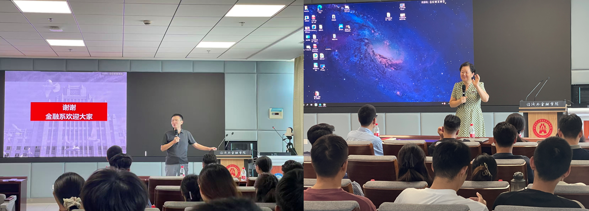 金融系主任程茂勇教授对2025级新生表示热烈欢迎,他从金融系的学科建设、师资队伍、校友资源、就业去向等方面进行了详细介绍,并希望同学们能脚踏实地认真学习,造就过硬本领,未来以专业技能服务人民,用爱心热心奉献社会,成为国家栋梁之材。青年教师代表葛瑶结合自身经历,分享了她在研究生阶段的学习经验。她建议同学们将“完成任务”的学习心态转变为“主动探索”的心态,减少简历上“浅尝辄止”的经历点缀,挖掘自身特长、明确职业目标,从特定领域切入,主动探索、广泛学习,将该领域学深钻透,以此形成个人核心竞争力。她还勉励同学们珍惜人生中难得的沉淀期,在学习与研究中坚守初心,稳步成长。