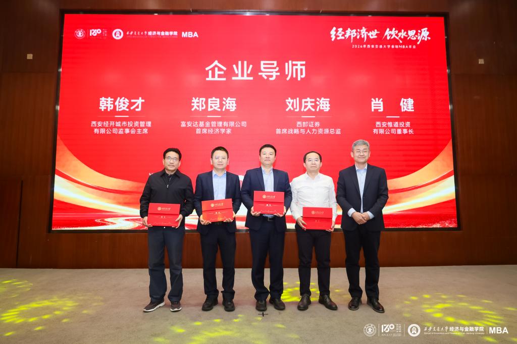 产教融合,行稳致远。为进一步拓宽育人视野,学院在此次活动中迎来了新的业界伙伴。西安经发控股监事会主席韩俊才、西部证券首席战略与人力资源总监刘庆海、富安达基金首席经济学家郑良海、西安惟道投资董事长肖健四位行业领军人物正式受聘为企业导师,进一步为西安交大金融MBA的高质量人才培养注入了强劲的业界力量。