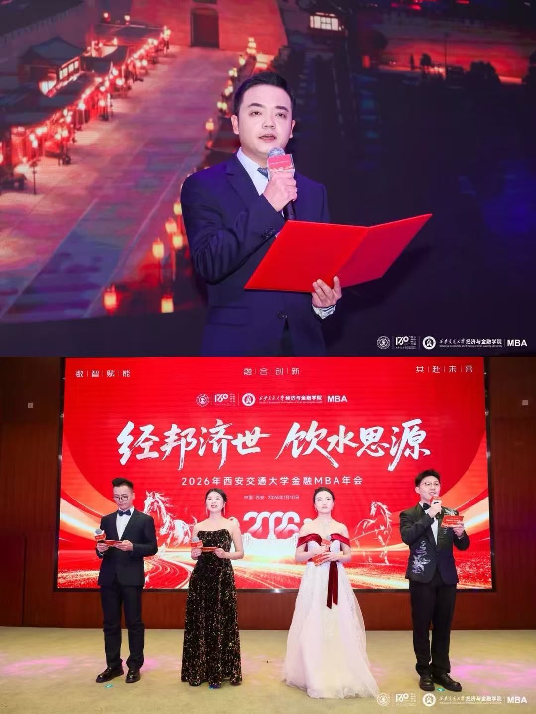 此次年会适逢西安交通大学建校130周年暨迁校70周年华诞前夕,以“数智赋能、融合创新、共赴未来”为主题,汇聚学界泰斗、业界翘楚与杰出校友,通过高端主旨报告、前沿圆桌对话、荣誉表彰典礼与文艺汇演等多元形式,共襄学术盛宴,共话金融未来。这场盛会不仅是对过去一年的回顾,也彰显了百年交大的深厚底蕴和经金学院的资源凝聚力,为MBA学子在新的一年继续奋进前行注入了澎湃动能。