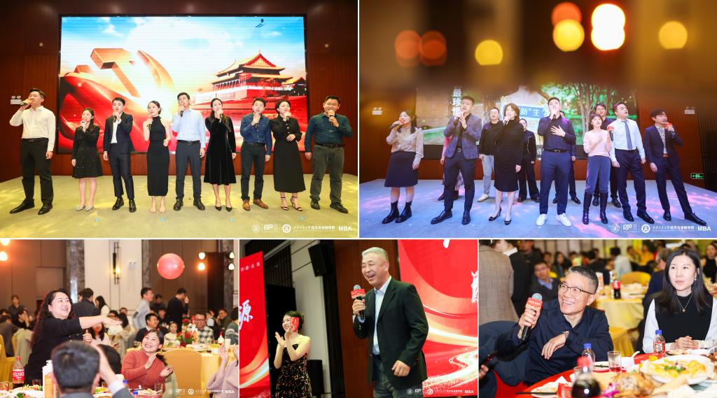 尾声之际,全场师生共同唱响《我爱你中国》与《凤凰花开的路口》。在激昂嘹亮的歌声中,同窗情谊与赤子之心交融升华,为这个美好的夜晚留下了难忘的注脚。这场晚会不仅是一场视听盛宴,更是金融MBA社群活力与才华的生动写照。师生、同窗情谊在欢声笑语中深深凝聚。