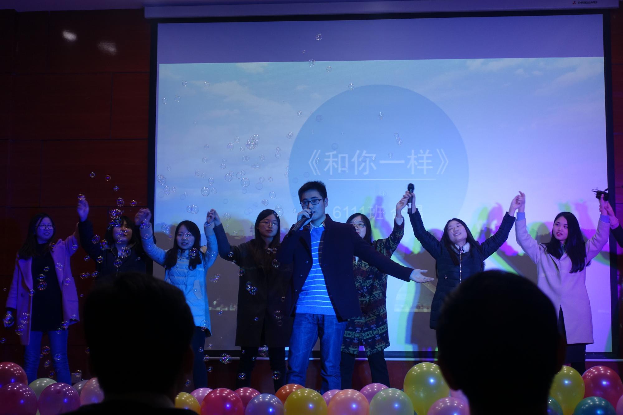 才艺表演结束后,大家一同欣赏了深情的歌曲《交大,我爱你》,动人的歌曲表达了每一位交大学子对母校的热爱,晚会的气氛又一次被推向高潮。