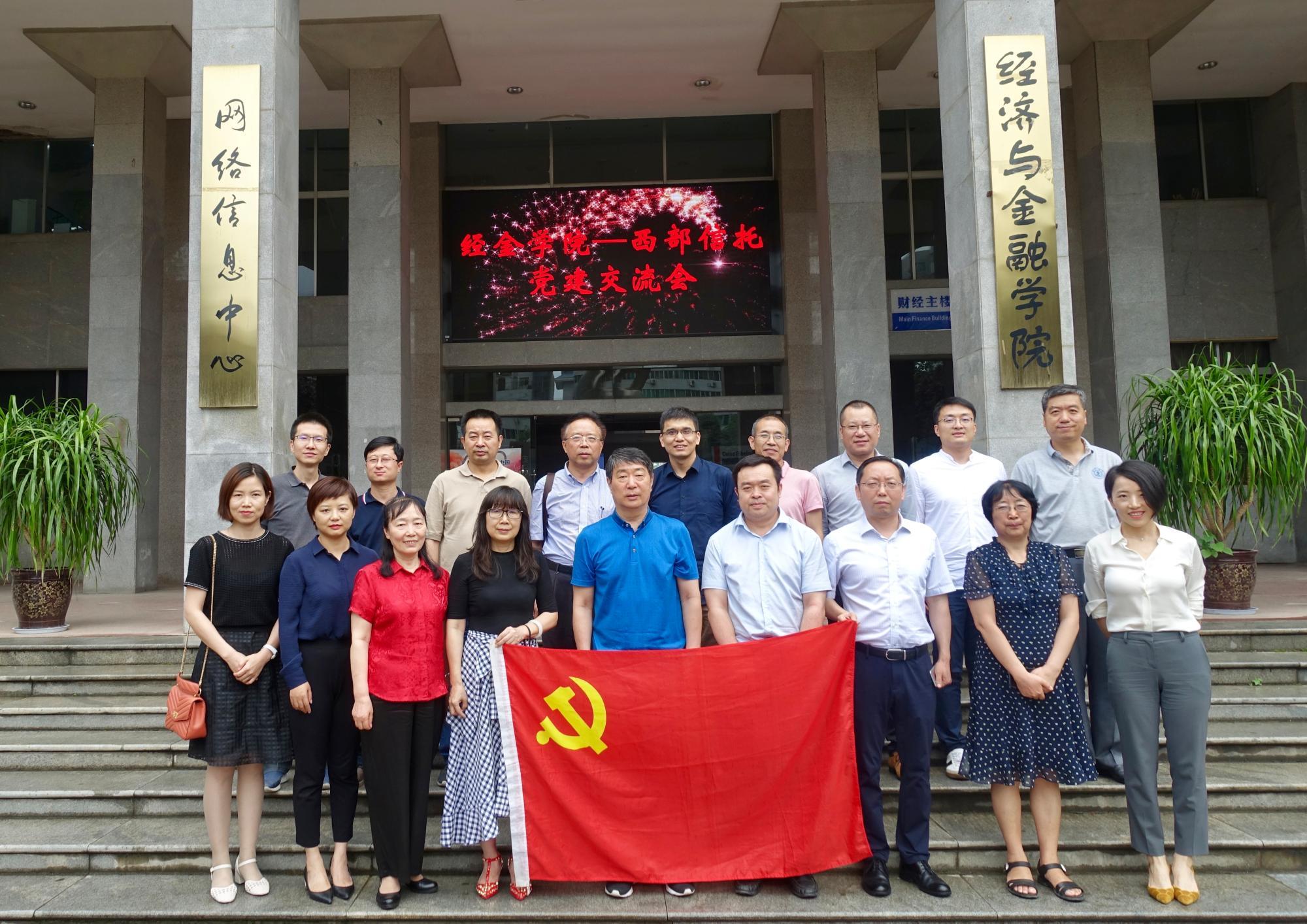 7月 16日下午,西部信托有限公司党委书记、董事长徐谦带领公司党政领导班子到访经金学院。双方以“不忘初心 牢记使命”为主题,紧密联系当前国际国内经济形势,围绕“金融供给侧结构性改革”进行了深入的交流。学院党委书记宋丽颖、金融系、金融工程系部分教师参加会议。会议由周建伦副书记主持。