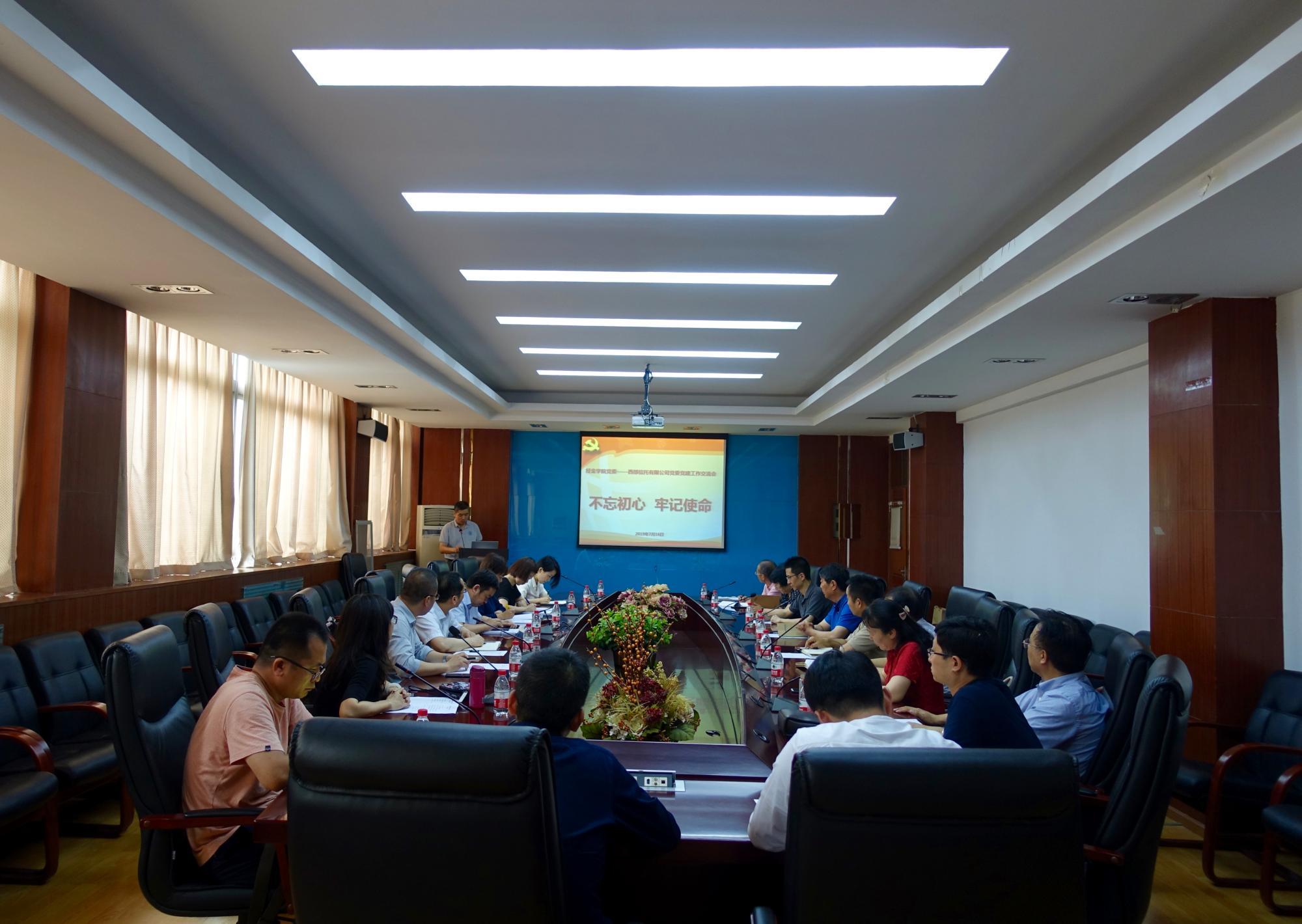 徐谦董事长表示很高兴与经金学院开展共建活动,详细介绍了西部信托有限公司情况、业务范围以及公司党建工作开展情况。他表示,希望以此次活动为契机,双方单位从理论研究和实践操作两方面加强交流,共同开展主题实践活动,以党建带动中心工作,进一步推动西部信托金融助力实体经济发展的能力。