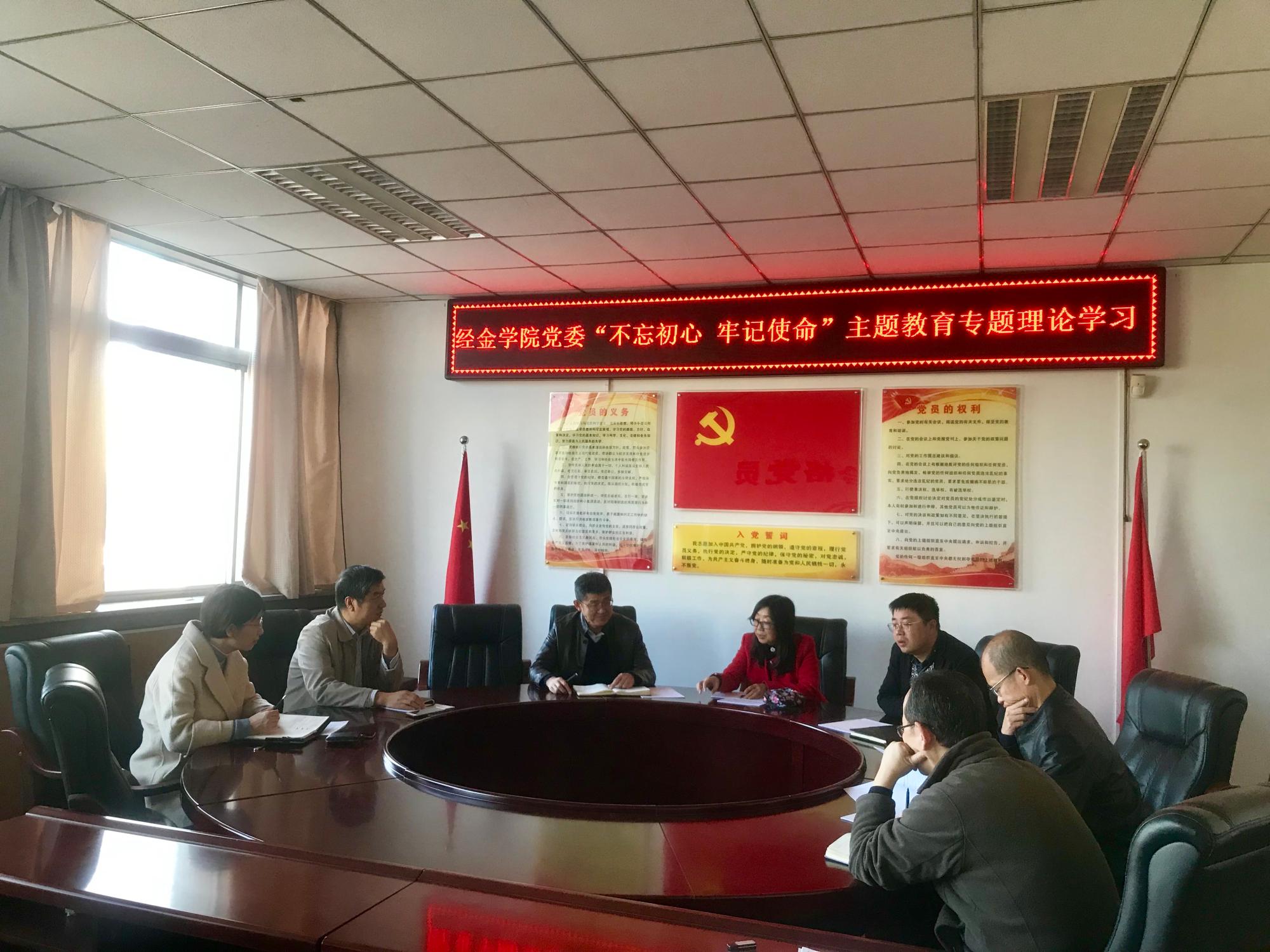 11月14日上午,经金学院在财经主楼708会议室召开中心组扩大会,专题学习十九大四中全会精神,学院领导班子成员,党委委员参会,会议由宋丽颖书记主持。