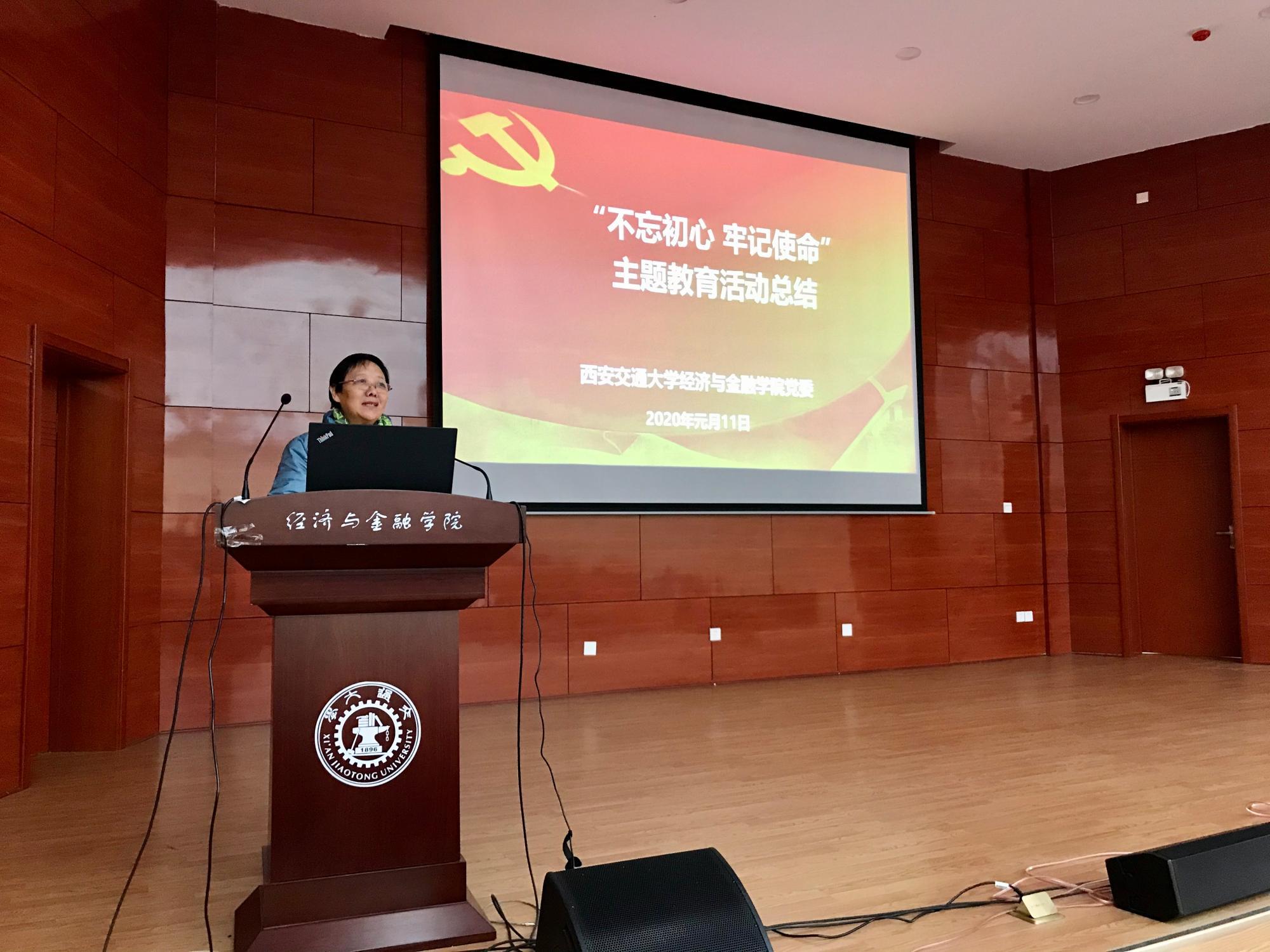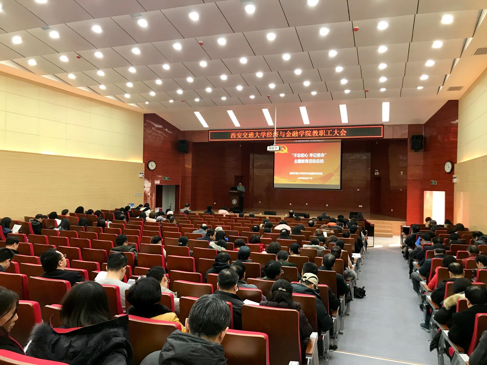 1月11日下午,经金学院在财经校区东配三报告厅召开“不忘初心、牢记使命”主题教育总结大会,全院教职工参会,学校第十指导组申小莹组长到会指导,学院党委周建伦副书记主持大会。