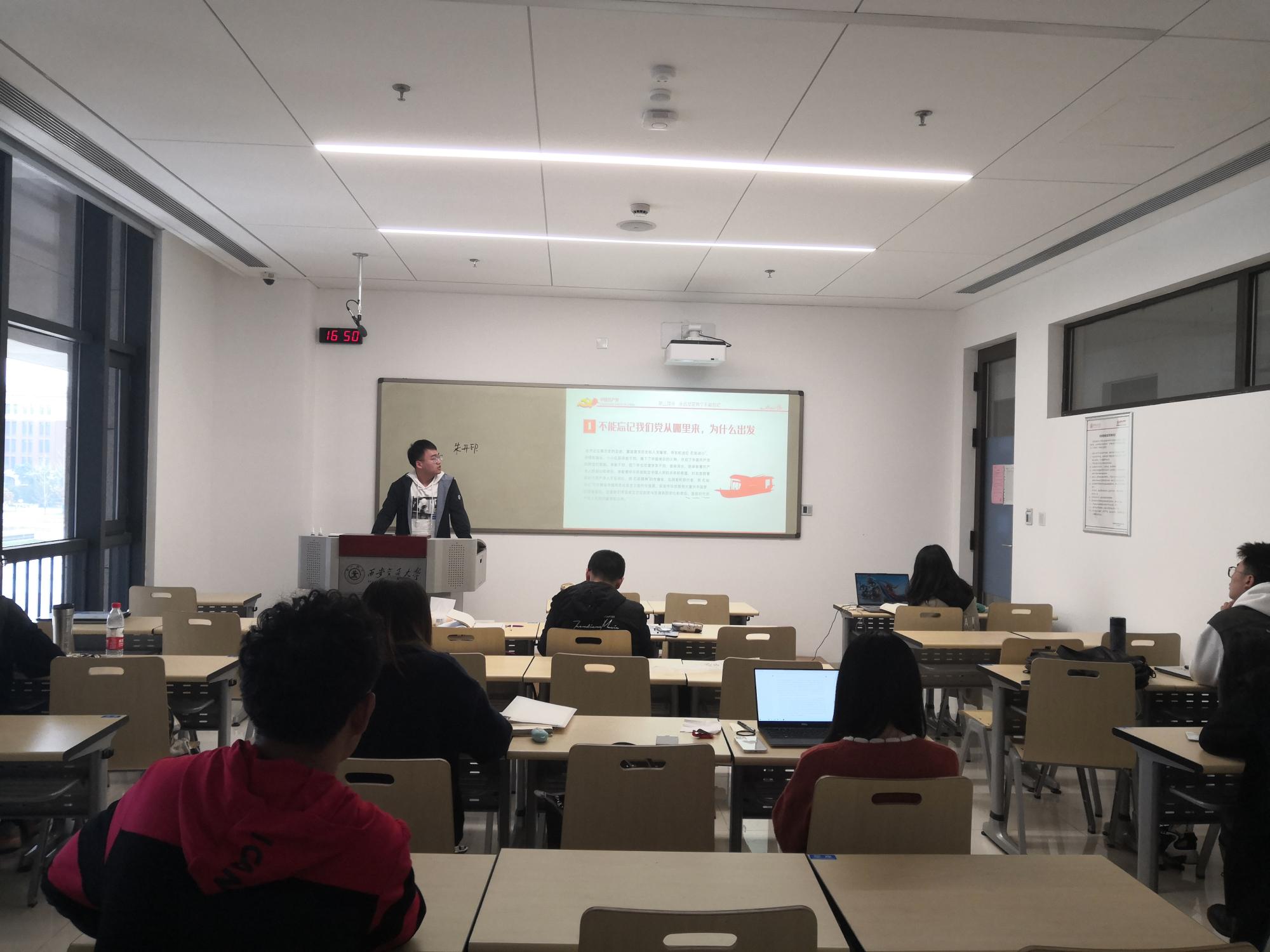 此次活动由刘昊玮同志主持,刘昊玮同志从党史的主要发展脉络及学习意义、一百年的艰辛与辉煌、永远坚定两个“不能忘记”三个部分对党的百年辉煌史进行了简要讲述。特别是在谈及“不能忘记我们党从哪里来,为什么出发”和“不能忘记我们党怎样一路走来”时,刘昊玮同志讲到自己的入党的初衷,就是内心深为党的发展历史所感动,并立志为以后的发展而奋斗。其他成员纷纷赞同,随后展开了热烈的讨论,表示要不忘初心,不忘历史。