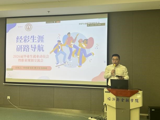 9月26日下午,经济与金融学院在创新港涵英楼召开2026届毕业生就业动员会暨职业规划交流会,旨在精准对接毕业生就业需求,帮助学生锚定职业发展方向,提升求职竞争力。学校就业创业指导服务中心王佳壮老师、学院优秀毕业生代表、用人单位代表受邀出席,经济与金融学院党委副书记刘小溪、研究生辅导员申珂瑗及2026届全体研究生共同参会。