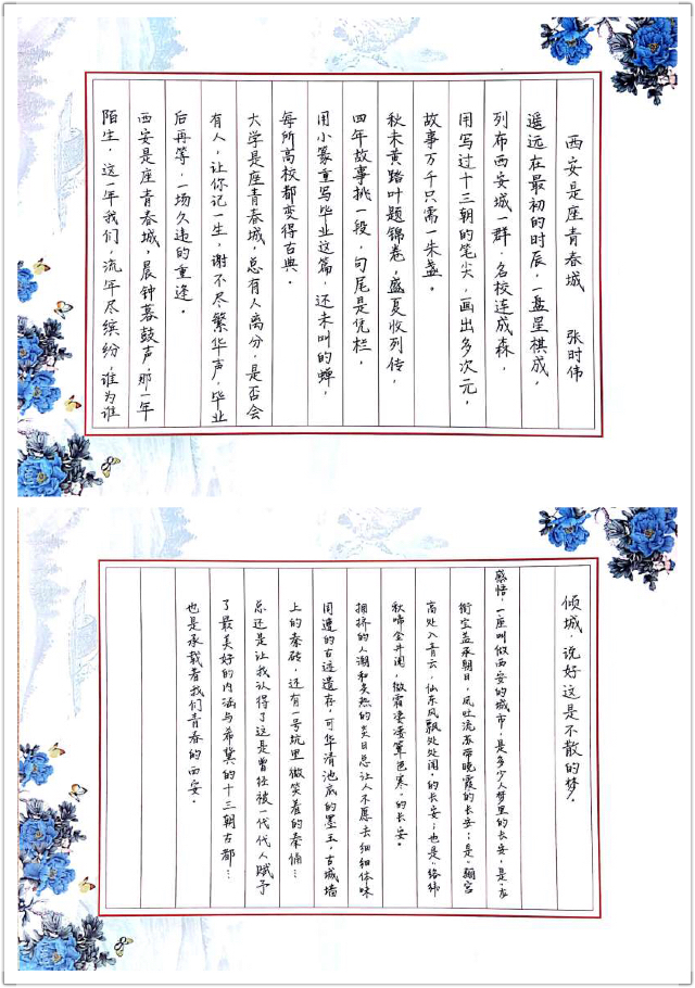 为弘扬中国传统优秀文化,丰富学生校园生活,3月9日-3月27日,经济与金融学院研究生会在西校区开展了“见字如面”书法比赛活动,并取得圆满成功。活动以“分享一段感动你我的文字”为主题,为同学们提供了一次精神交流的机会。通过一周时间的作品征集,本次活动收到了许多的优秀作品,同学们或摘抄有力量的文字,分享自己的感悟;或大笔一挥,展现自己良好的书法功底,活动最终通过微信线上投票和专业老师打分两个环节,评选出获奖作品。