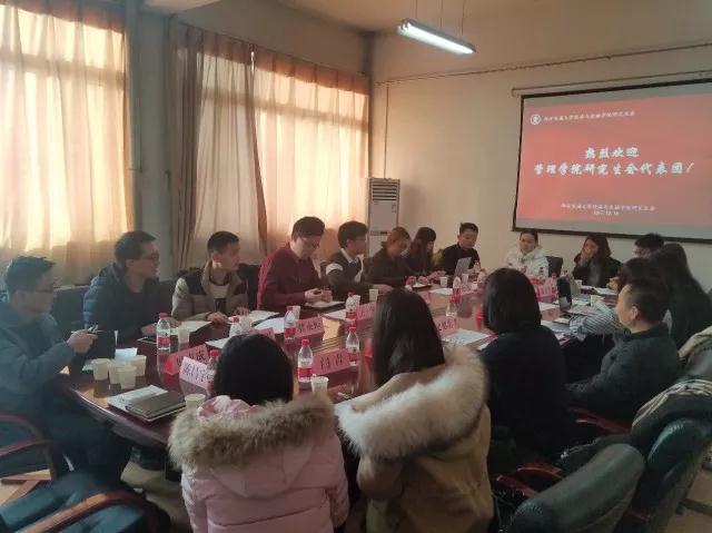 经金学院团工委副书记史旭东从党、团、研、教四方面入手,介绍了目前经金学院学生工作的宏观概况,经金学院研究生会主席雷蕾重点阐述了院研究生会目前的发展思路及未来的跨院系、跨学校合作意愿。管理学院研究生会主席郎庆喜从组织架构、规范体系、发展方向等方面介绍了管院研究生会的情况,表达了对于经管两院达成合作,力求双赢,共创“双一流”的希冀。