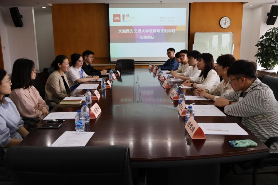 当日下午,团队前往复旦大学经济学院进行调研。复旦大学经济学院党委副书记高舒对来访团队表示欢迎,并介绍了学院的基本情况。刘小溪副书记再次分享了西安交通大学经济与金融学院的学生培养经验。