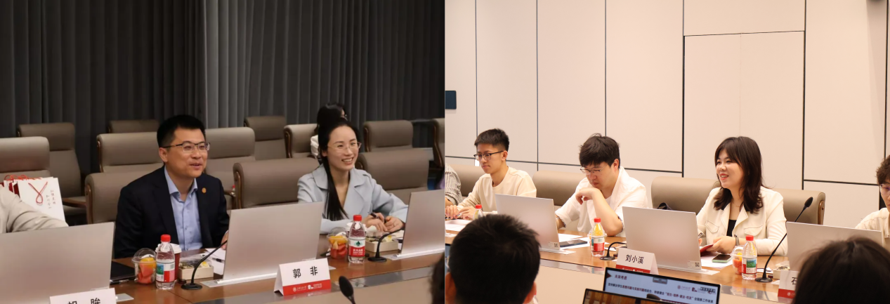 研学团队首站走进上海交通大学安泰经济与管理学院。安泰经管学院党委副书记郭非,学生工作与职业发展办公室主任王璐怡,团委书记胡眸,职业发展老师王艳丽,团委副书记李雨桐,学生骨干等参加交流。