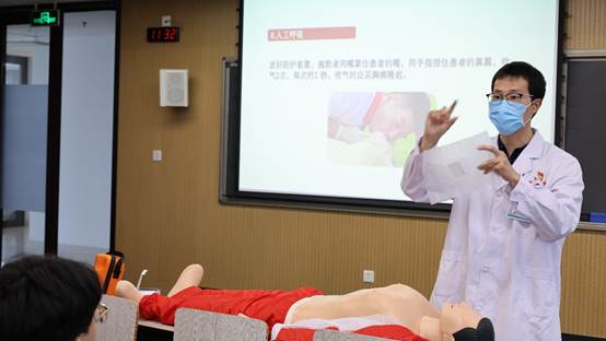 江啸聚焦“黄金4分钟”生命救援,重点讲解自动体外除颤器(AED)使用方法、心肺复苏(CPR)操作流程及正确要领。理论讲解过程中,他借助教学器材进行现场操作演示,逐一步骤分解动作细节,将抽象的急救知识转化为直观可感的实操内容。在场新生全神贯注学习,纷纷表示通过讲座不仅掌握了实用的急救理论,更清晰明确了紧急情况下实施初步救援的正确思路与方法。