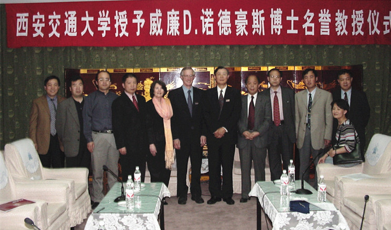 威廉·诺德豪斯教授曾于2002年应邀来我校经金学院访问,西安交大时任校长徐通模教授亲自为其颁发聘书并为其佩戴校徽,聘任威廉•诺德豪斯教授为西安交大名誉教授。威廉•诺德豪斯教授是美国杰出的经济学家之一,出生于新墨西哥州的爱伯克奇。本科就读于耶鲁大学,经济学博士学位是在麻省理工学院获得的。现任耶鲁大学惠特尼?格里斯伍尔德经济学教授和考尔斯经济学研究基金会理事。诺德豪斯的经济学研究范围很广,包括环境、价格、能源、技术变革、经济增长、利润和生产率的增长趋势。此外,诺德豪斯还对经济政策很感兴趣。他在1977 ~ 1979年间是卡特总统经济顾问班子成员,曾在美国政府各种顾问理事会和委员会中任职,不时给《纽约时报》和其他报刊撰文,在耶鲁大学主讲经济学原理课程。