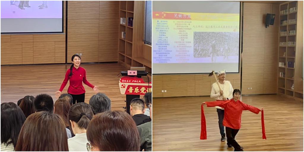 本次党课由陕西省音乐家协会会员、西部电影集团“音乐党课”讲师刘婧主讲。以史串歌,借歌弘史,刘老师以《团结就是力量》、《山丹丹花开红艳艳》、《黄河船夫曲》、《黄河大合唱》等经典红歌为切入,解读歌曲背后的创作史实,再现了一段段动人心弦、波澜壮阔的中国共产党革命史。同学们在欣赏地方歌曲、观看纪实影像、诵读革命诗词、合唱经典红歌的过程中重温党史、铭记初心,现场气氛热烈。音乐党课充实的内涵和新颖的形式也得到了同学们的一致好评。