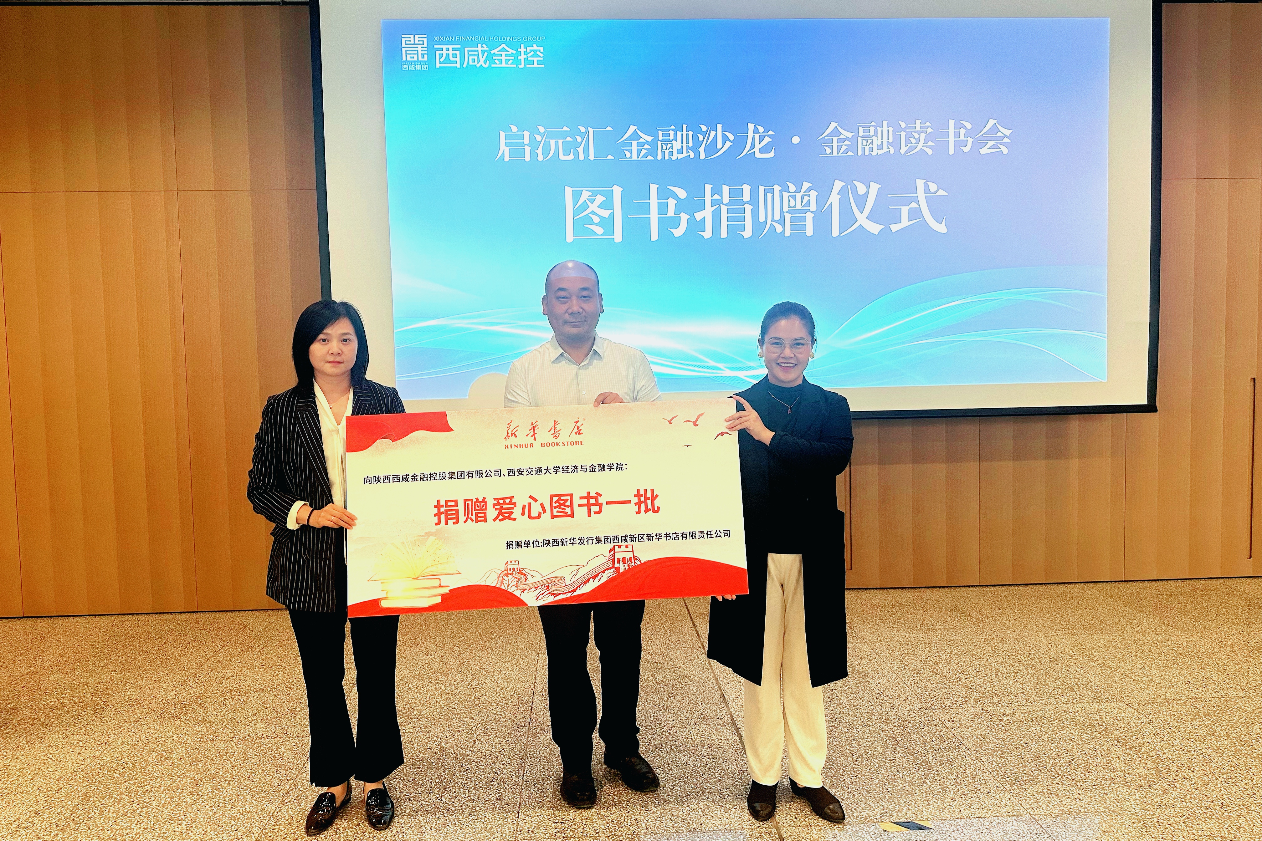 在随后的书籍捐赠仪式上,西咸新区新华书店副总经理多斌勉励与会者:“愿大家在阅读中夯实理论根基,在交流中启迪实践智慧,实现文化价值与商业实践的共生共荣。” 此次捐赠的专业著作涵盖宏观研判、风险管理、金融科技等领域,为学子们打开了透视经济运行的多维窗口。
