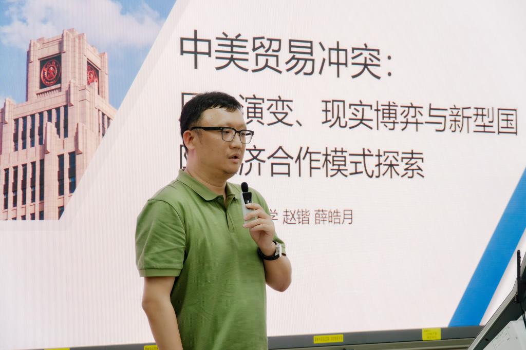 在特邀报告环节,西安交通大学经济与金融学院赵锴副教授以“中美贸易冲突:历史演变、现实博弈与新型国际经济合作模式探索”为题,系统梳理了中美贸易争端的历史渊源:从《斯穆特-霍利法案》(The Smoot-Hawley Tariff Act)引发的大萧条,到特朗普时代不合理关税政策的回归,揭示美国发动贸易战的深层次原因。他认为:“美国贸易逆差是各种宏观、微观因素的合力结果,例如国际分工,美元霸权或美国本土制造业空心化等。面对遏制与脱钩压力,中国表现出高度的战略重构能力与区域聚合力,正通过多边合作深化、国产替代攻坚,国际市场多元化,数字贸易创新等渠道构建新型多边国际经贸体系。”
