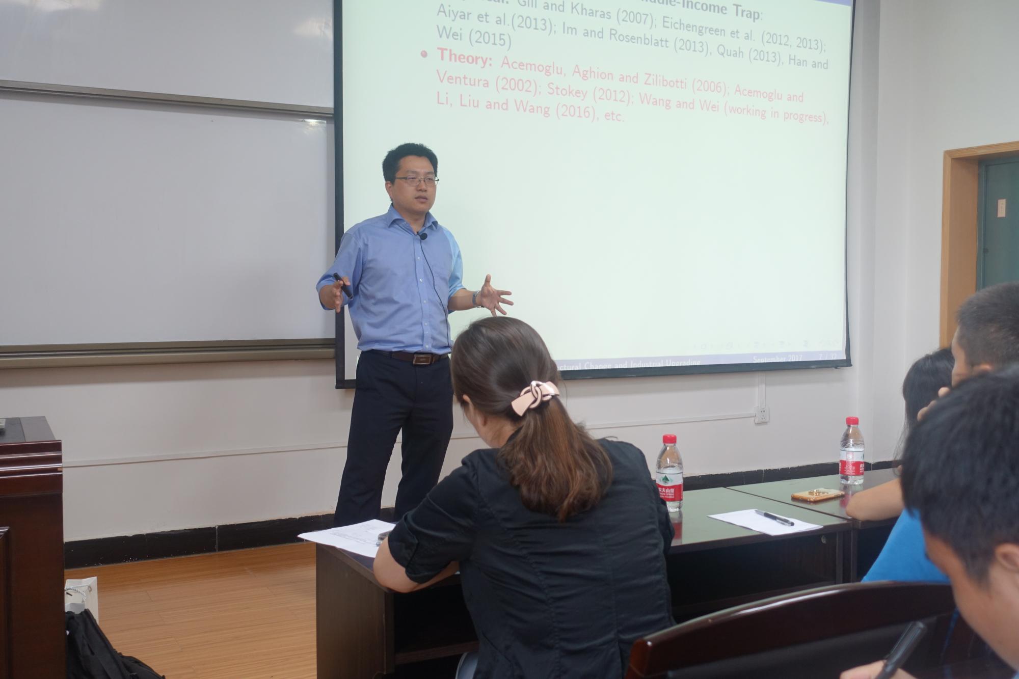 2017年9月21日,北京大学新结构经济学研究中心副主任,博士生导师,王勇博士应邀来西安交通大学经济与金融学院进行学术交流。21日下午,王勇博士做了题为《产业升级、结构转型与中等收入陷阱》的学术报告,来自经金学院、管理学院、金禾研究中心的师生共约200多人参加了报告会。经济与金融学院产业与贸易经济系系主任杨秀云教授主持了该报告会。