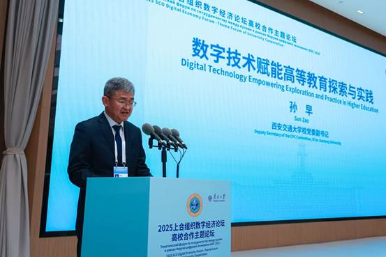 7月11日,由国家数据局、天津市人民政府主办,南开大学承办的2025上合组织数字经济论坛高校合作主题论坛在天开高教科创园举办。西安交通大学党委副书记、经济与金融学院院长孙早率队参加并作主旨发言,管理学院副院长赵玺,经济与金融学院金融系主任程茂勇、电商系主任王乐、产经系副主任李双燕参加论坛。来自俄罗斯、哈萨克斯坦、吉尔吉斯斯坦、塔吉克斯坦、巴基斯坦等上合组织成员国高校代表与来自北京大学、清华大学等中国高校的专家学者和师生代表200余人参加论坛。