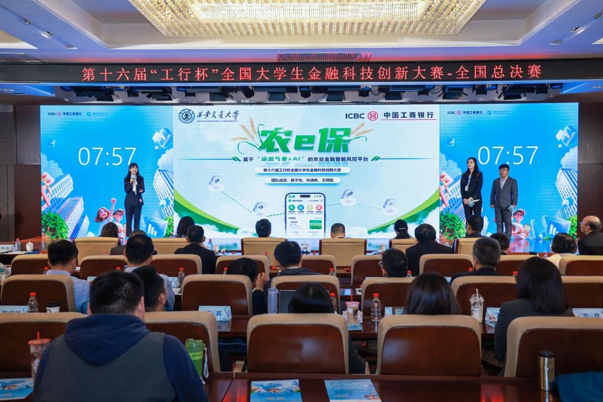 12月6日,由中国工商银行主办的第十六届“工行杯”全国大学生金融科技创新大赛总决赛在对外经济贸易大学落幕。由西安交通大学经济与金融学院林颖副教授指导,薛子怡、孙逸帆、王琦皓同学参与的《农e保——基于遥感+AI的农业普惠贷款智能风控平台》项目荣获全国特等奖,是陕西省近三年最好成绩。此外,由经济与金融学院董志龙副教授、徐晓瑜副教授指导,刘天然、匙艺、覃戊辉同学参与的《智旅e站——数智技术赋能的金融文旅一体化平台》项目进入百强名单,西安交通大学多个作品获得省赛奖项。