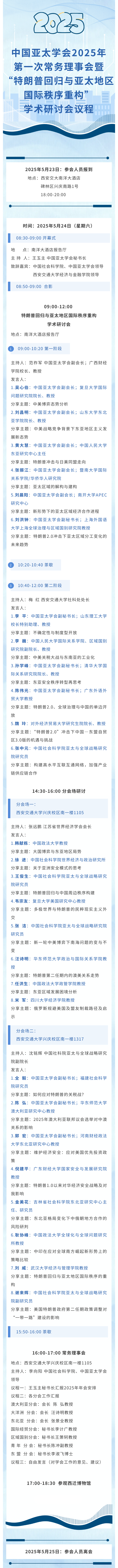 中国亚太学会2025年第一次常务理事会暨“特朗普回归与亚太地区国际秩序重构”学术研讨会议程