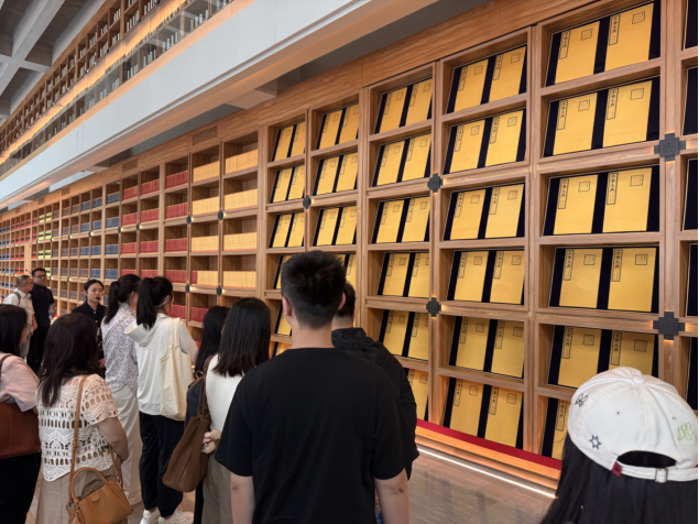 学院师生首先抵达西安国家版本馆参观研学。西安国家版本馆依秦岭而建,风格宏伟大气、立足文化传承,承担着赓续中华文脉、坚定文化自信、展示大国形象、助推文化复兴的重要使命。